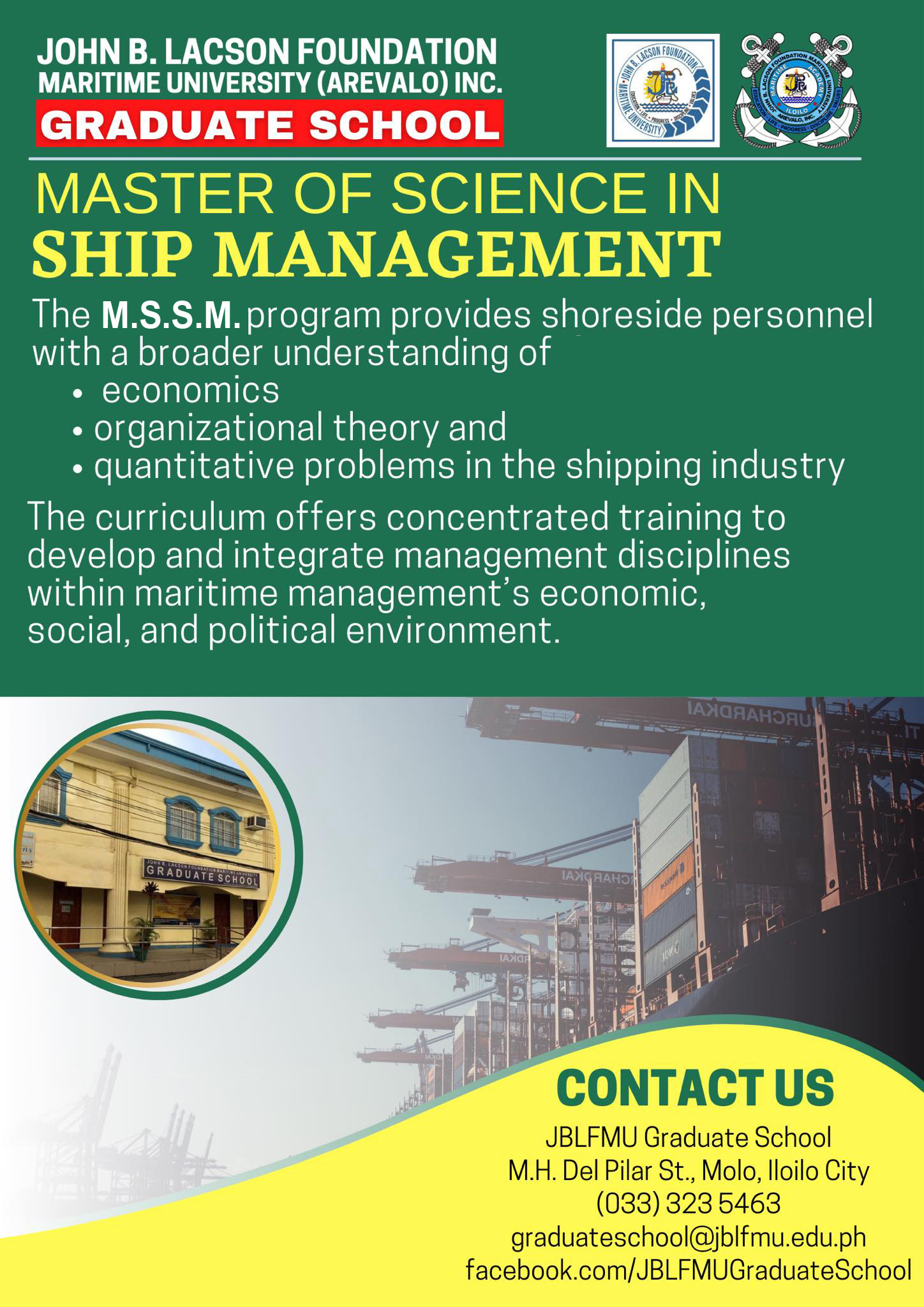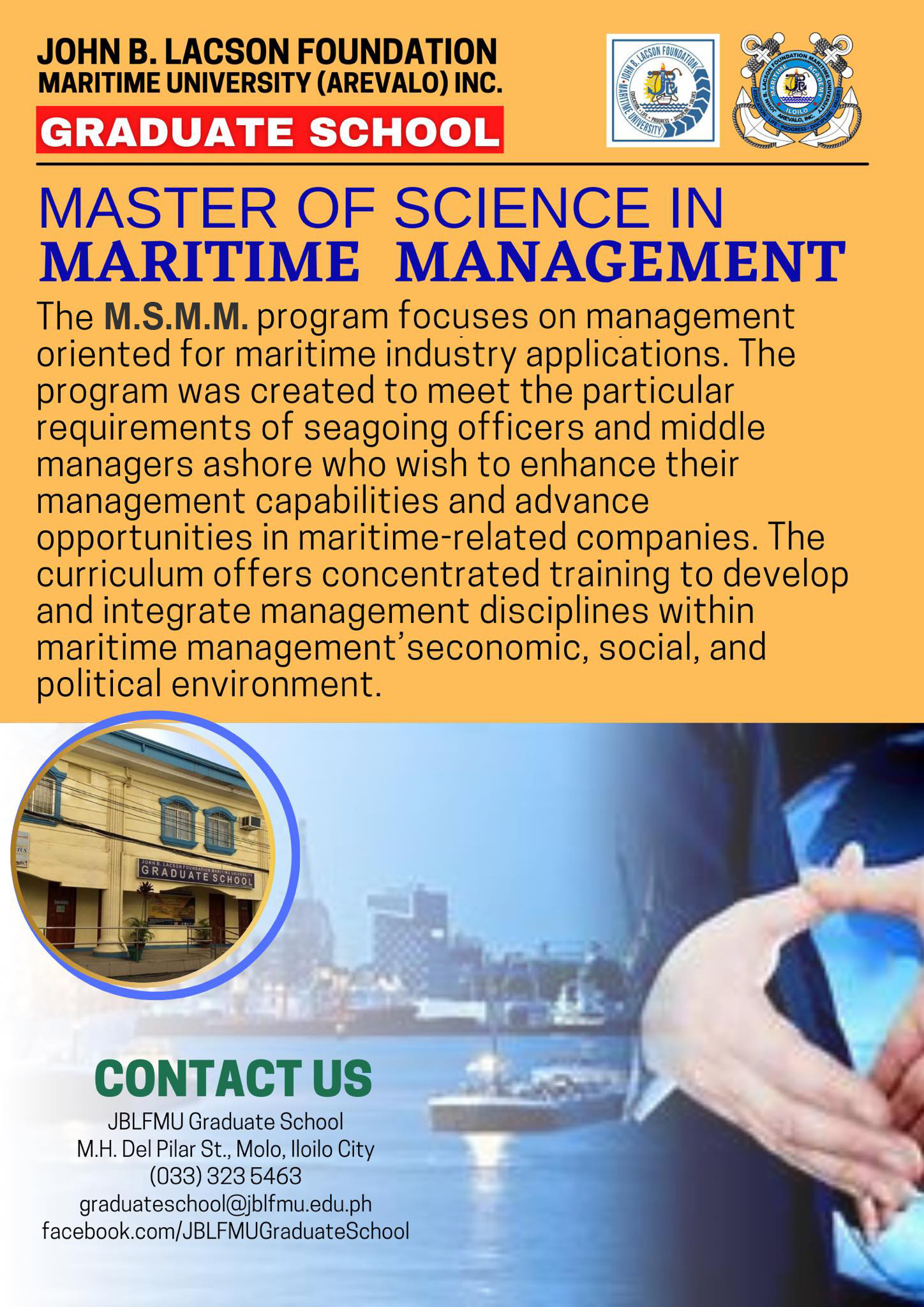 John B. Lacson Foundation Maritime University Graduate School offers programs leading to Maritime Doctoral and Masteral Degrees.