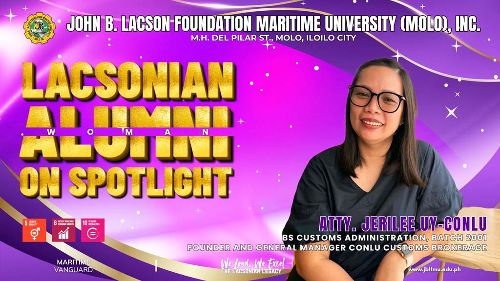 She chose to study at John B. Lacson Foundation Maritime UniversityโMolo because it was the only institution at the time offering Bachelor of Science in Customs Administration. What began as a practical decision became the strong foundation of her career in customs brokerage and, later, in the field of law.