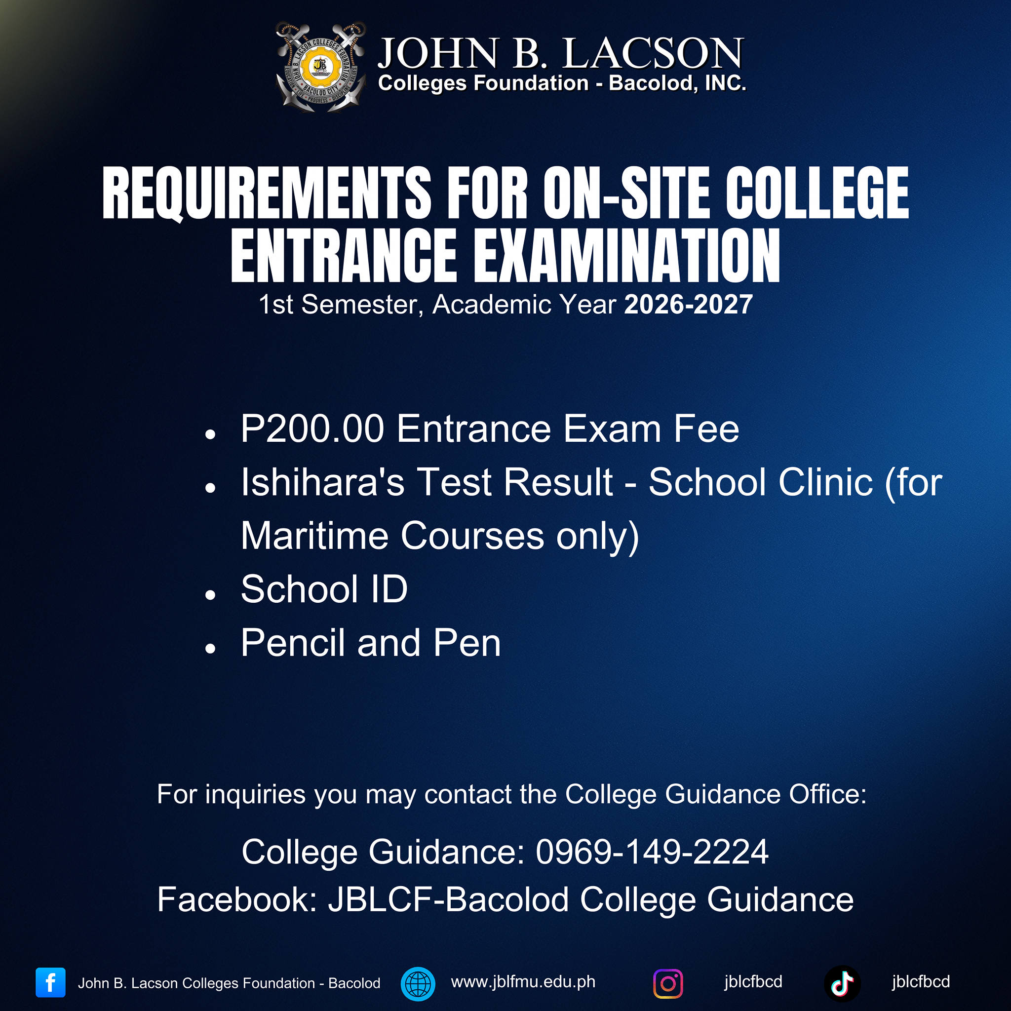 ATTENTION BACOLOD INCOMING FIRST YEAR STUDENTS!