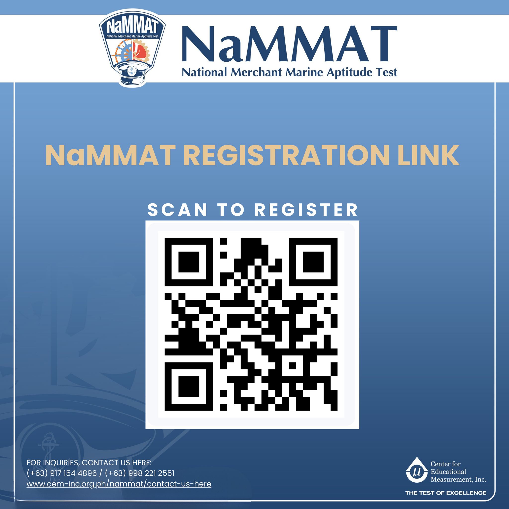 For complete guidance on registration policies, procedures, requirements, test sites, and schedules, please refer exclusively to the official NaMMAT Bulletin of Information (BOI): https://bit.ly/463Xfpi